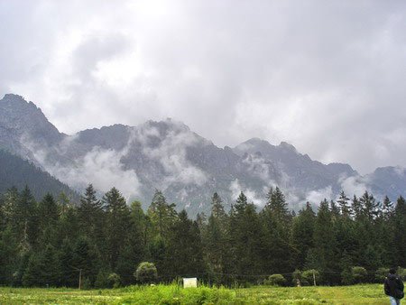 Утро 4-го числа. Жизнь кипит уже вовсю: звонки велосипедов, крики чистильщиков обуви. На нашем пути город Туцяньянь. В нем много пальм, платанов и каких-то странных елей с большущими иглами. Близость гор создает ощущение, что ты в Швейцарии. Горная река петляет через весь город. Видны отроги гор с очень рваным ритмом и слабые по тону, по акварельности похожи на работы художников стиля Гохуа. Останавливаемся у магазина, для покупки молока и продуктов. Водитель джипа сказал, что сегодня уже будем в горах, где лежит снег, поэтому Ларисе (моей жене) покупаем высокую обувь. Как и везде в этих местах, вокруг нас тьма народу. А вот и наши провожатые, ну, значит в путь.