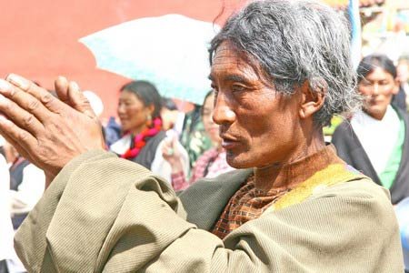 Вдруг водитель заторопился, усаживая нас в джип, и за гигантскую гору. А там увидел я фантастический город. Да какой! Он стоял у подножья горы, словно сошедший со страниц романов Маркеса, где нет ни одного дерева, где солнце нестерпимо, где звуки приглушены, где ты живешь с этим народом, который здесь родился и жизни другой не знает; для которого ламаизм – это и молоко матери, и вера и сила, и образ существования, и смысл жизни.Мы стоим перед древнейшим храмом, и со всего городка об одной улице и о двух-трех этажах стремительно стекаются, обходя тебя, вот тот выразительнейший народ, о котором я рассказывал: темные лица, обожженные солнцем, темные глаза, темные одежды, шляпы, а поверх всего надеты все украшения из сундуков прародителей: все серьги, все пряжки. И через все протянуты ярчайшие нити, веревочки и колокольца. Поперек улиц, столбов и стен – флажки со всей Вселенной - Учитель приехал!