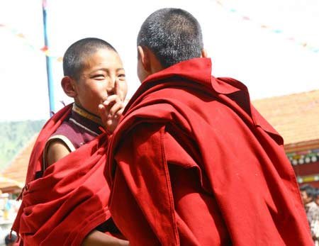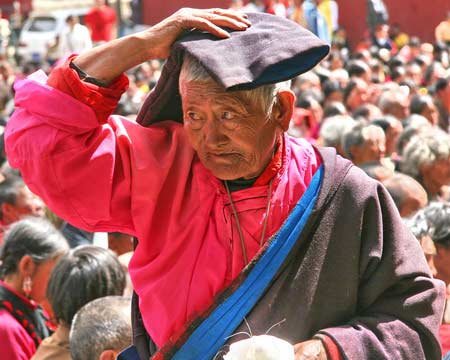 Население этого городка ещё выразительнее, чем вчерашнее. Кожа как у индусов, совсем синяя. По-китайски не говорят. Ходят все в пончо черного или коричневого цвета и широкополых шляпах. На женщинах – юбки в пол, тоже коричневые или черные. У мужчин на поясе сзади – кинжалы. Профили у всех очень хищные, желтые зубы и синие ногти. Но отношение к белым очень доброжелательное. Бесконечно кричат «Hello!», нас принимают за немцев. О русских ничего не знают. Не покидает ощущение, что я нахожусь в Латинской Америке, в какой-нибудь банановой республике. Смущает только большое количество монахов в малиновой одежде и головных уборах-козырьках. Вот эти точно никто не знает китайского. Проверял!
