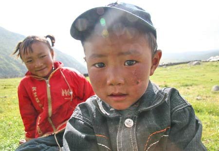 После высокогорных пастбищ, где тысячи животных и сотни юрт – лунное безмолвие: валуны, мертвые озера и жуткая тишина. На высоте 3800 проезжаем через небольшое поселение. Здесь фотографирую детей, они потом долго бегут за мной и кричат: «Money!» Дрессированы! Отделываюсь одни юанем. После обеда небольшой отдых и марш – бросок до города Яотин.