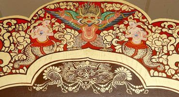 Каждый вечер и по выходным тибетские художники, резчики по дереву и волонтеры приходят к Янгпелу в маленькую мастерскую, чтобы начать работу над священным троном, вырезая из дерева его детали, выписывая орнаменты и драпируя его в шелковую парчу.