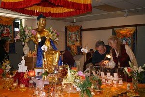 Священные реликвии буддийских учителей и святых, или сариры, были выставлены в прошедшие выходные в Центре Виллитса в Фремонте. Местные жители получили редкую возможность посмотреть драгоценную коллекцию бесплатно.Сариры хранятся в золотых емкостях в форме лотоса, окружающих золотую статую Будды Майтрейи. В течении дня непрерывный поток посетителей шел, чтобы отдать уважение просветленным, почувствовать исцеляющую энергию или насладится атмосферой милосердия.