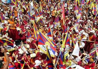 Фоторепортаж: "Массовая манифестация тибетцев против Олипийских игр в Пекине"