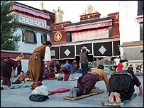 Ежедневно в Лхасе перед храмом Джокханг, сердцем тибетского буддизма, сотни паломников совершают простирания. Глубокое благочестие можно в буквальном смысле прочитать на их лицах – у многих остались следы от постоянного прикладывания лбом к полу. По данным статистики Лхасу посещают более миллиона паломников ежегодно. Китайские власти считают это неоспоримым свидетельство религиозной свободы в Тибете.