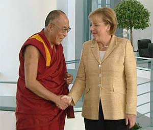 Тибетский далай-лама нанес официальный визит в ФРГ. В Берлине духовного главу буддистов мира приняла канцлер ФРГ Ангела Меркель, которая заверила его в своей поддержке усилий тибетцев по сохранению своей культурной и религиозной автономии. В свою очередь, далай-лама подчеркнул ненасильственный характер тибетского сопротивления. Лауреат Нобелевской премии мира 1989 года заявил, что ему очень приятно, что канцлер Германии "не забывает старых друзей" - впервые он общался с Ангелой Меркель в бытность ее лидером немецкой консервативной оппозиции.