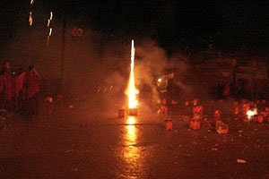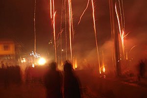 Молитвы и фейерверки в честь вручения Далай-ламе Золотой медали Конгресса США в тибетском монастыре Лабранг (историческая провинция Амдо)