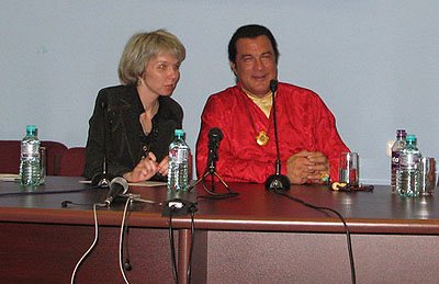 - Вы в основном снимаетесь в боевиках. Не задумывались ли вы, под влиянием буддизма, о смене своего актерского амплуа? Не хотелось ли вам участвовать в фильмах более философских, психологических - например, сняться в фильме о буддизме? Возможно, это способствовало бы распространению идей буддизма.Голливуд – это место, где нравы находятся в таком упадке, что там существует весьма забавное высказывание: «Если хочешь отправить послание миру, пойди в Вестерн Юнион». Среди людей, которые финансируют кинематограф, нет буддистов. Они – иудеи и не интересуются ничьей философией. Но, тем не менее, мне очень и очень много раз удавалось привнести в фильмы с моим участием элементы буддийской философии и буддийской культуры. Мне единственному удалось сделать две большие картины об охране окружающей среды.