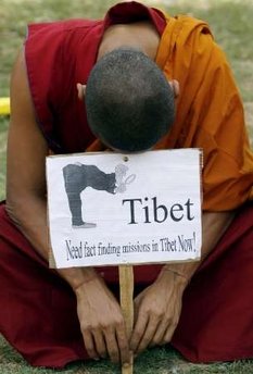 Надпись на плакате: "Тибету срочно требуется проведение расследования для установления фактов"