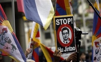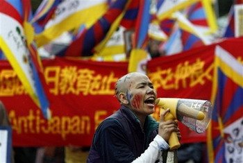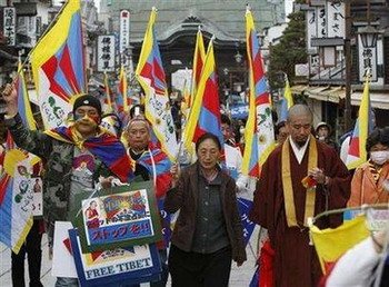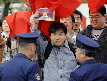 На акции протеста в город съехались не только борцы за свободу Тибета, но и японские националисты, известные своим негативным отношением к Китаю.