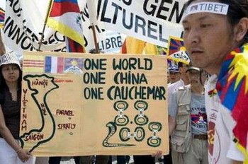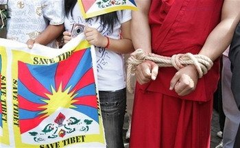 «Мы протестуем против нарушения прав человека в Тибете, призывая мировое сообщество оказать максимальное давление на Пекин».