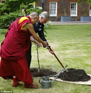 Фото Reuters. Далай-лама и принц Чарльз сажают дерево в парке