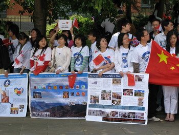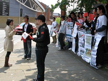 В отличие от подобной акции в Санкт-Петербурге, на которую китайские студенты, по всей видимости, пришли по собственной инициативе, протест в Ноттингеме был заранее спланирован и тщательно подготовлен. Митингу предшествовал предварительный инструктаж, плакаты и баннеры отличались завидным полиграфическим качеством, а многочисленные листовки и ведра для сбора пожертвований для жертв землетрясения в Сычуани подвозили дорогие автомобили.