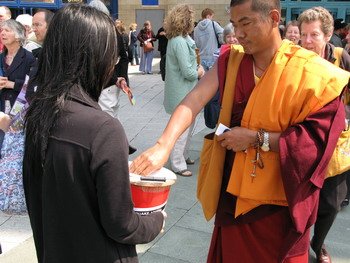 Первый день публичных выступлений Далай-ламы в Ноттингеме, куда духовный лидер прибыл после масштабной программы в Лондоне, сопровождался шумными акциями протеста китайских студентов. По завершении утренней лекции молодые китайцы встретили последователей Далай-ламы красочными плакатами и громким скандированием лозунга: «Один Китай, одна семья!», на что британцы резонно возражали: «С членами семьи так не обращаются», имея в виду подавление недавних народных волнений в Тибете и жесткий контроль в тибетских монастырях.