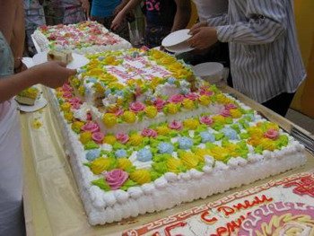 Сразу после лекции все монахи и гости отправились в парк «Дружба», чтобы посмотреть концерт в честь Его Святейшества Далай-ламы. На сцене парка гостей также ждали три больших торта – такое подношение сделали за здоровье учителя «Золотая обитель Будды Шакьямуни», буддийские центры «Ченрези» и «Тилопа».