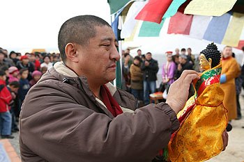 Ринпоче объяснил, что вместе с монахами они совершают обряды омовения и освящения ступы. Но священным это место могут сделать не только ламы: «Если вы сами будете искренне молиться, – объяснил присутствующим Верховный лама Калмыкии, – то люди всей земли, все животные и насекомые будут осенены благословением этой ступы».
