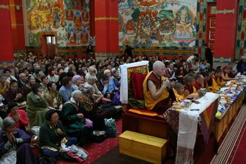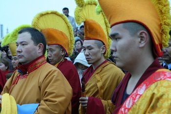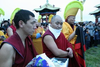 В буддийской церемонии приняли участие свыше 1,5 тыс. прихожан, монахи, а также верховный лама Калмыкии Тэло Тулку Ринпоче и прибывший из Бурятии Еше Лодой Ринопче, сообщил корреспондент агентства "Интерфакс-Юг".