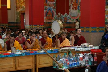 По словам Еше Лодоя Ринпоче, первым из ритуалов была проведена церемония устранения препятствия - торгьяк. При этом он призвал всех собравшихся в ходе молебна "породить в себе чистые помыслы и добрую мотивацию ради пользы всем живым существам".