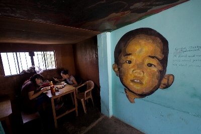 Тибетское кафе в Дхарамсале. На стене портрет Панчен-ламы,