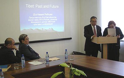 – Завтра в Институте монголоведения, буддологии и тибетологии СО РАН состоится Круглый стол. Тема моего доклада: «Тибет: прошлое, настоящее и будущее». Я хотел бы там ответить на некоторые вопросы, связанные с этой темой. Как вы знаете, Тибет расположен в сердце Азии, между Китаем и Индией. В Тибете – истоки крупнейших в Азии рек. История Тибета насчитывает 2000 лет. А если судить по данным современных исследований, то Тибету уже более 5000 лет. В течение долгих веков Тибет был изолирован от внешнего мира, но там развивалась очень интересная и содержательная культура. Как вы знаете, сейчас мы во главе с Его Святейшеством Далай-ламой провозгласили, что не стремимся к полной самостоятельности, наша цель – подлинная автономия со всеми вытекающими из неё правами, которые необходимы, для того чтобы сохранить нашу культуру. Мы стремимся к настоящей автономии в рамках другой культуры и государства: оставаясь в рамках Китая, мы только выиграем от этого, так как Китай – это экономически развитая страна. Экономическую выгоду от этого мы можем компенсировать тем, что будем развивать духовность.