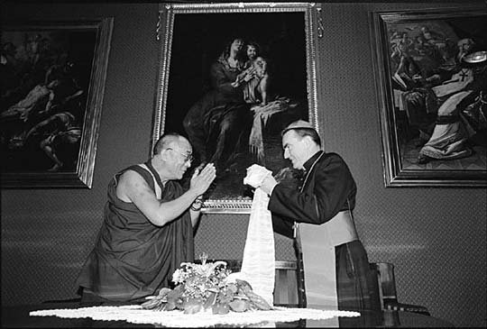 сотрудничества. В знак приветсвия Далай-лама вручает архиепископу традиционный