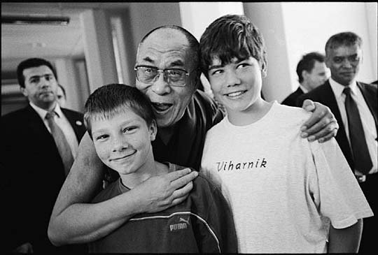 Мир сейчас проходит очень трудный период, период, когда мы снова оказываемся перед угрозой войн и потрясений. Всем нам известно о тяжелой судьбе народа Тибета, о страданиях, которые испытывают жители Югославии и, в особенности, Косово. В своей последней книге вы выдвигаете идеи, которые уже озвучивали прежде, о необходимости создания на планете зон мира в тех точках, где свирепствуют конфликты, а люди оказываются в опасности. Мы приветствуем вас сегодня прежде всего как сторонника идеи о том, что лишь мирное решение мировых проблем является верным. Мы ясно видим, что ваши духовные и нравственные учения несут на себе явные признаки истины; четыре из них — смирение, человечность, терпение и сострадание. С глубокой благодарностью мы приветствуем вас сегодня как провозвестника мира и духовного учителя.