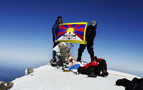 24 августа в 12.10 по Москве на вершине Эльбруса был развернут флаг свободного Тибета со снежными львами и ярким солнцем, восходящим над горой. Напомним, что 31 мая флаг Тибета уже поднимался на вершину Эльбруса. Тогда снежный барс Юрий Круглов и Алексей Юрков, развернув тибетский флаг, "обратились к небесам и миру с просьбой о содействии в совершении пастырского визита Далай-ламы в Элисту, а также пожелали всем живым существам благ и избавления от страданий".
