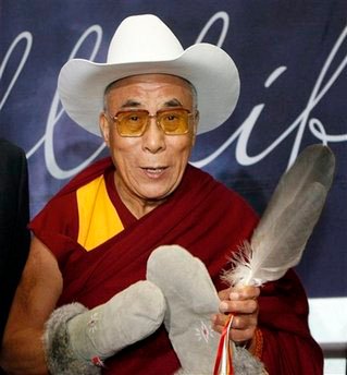 Далай-лама в ковбойской шляпе, канадских руковичках