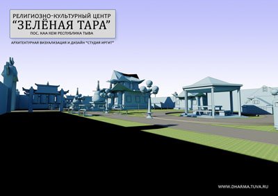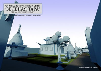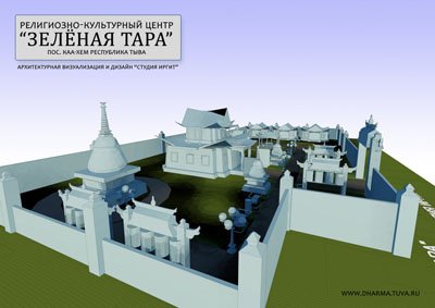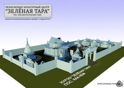 Храм «Зеленая Тара» будет воздвигнут в восточной части поселка Каа-Хем вблизи субургана «Нирвана». Проект реализуется при содействии Камбы-лама Республики Тыва Джамбела Лодоя.