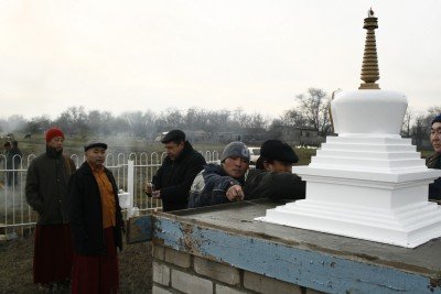 Сбор средств не прекращался. Материальную помощь оказывали фермеры, предприниматели, учителя местной школы, сельское муниципальное образование и сельхозпредприятие. Деньги необходимы были на завершение задуманного - на сооруженном пьедестале должна стоять Ступа Просветления. Недавно ее сделали в Элисте, а в последнее воскресенье ноября, 29 числа, Ступу торжественно водрузили на постамент по всем древним религиозным буддийским обычаям.