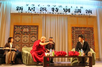 Далай-лама прилетел в Ниихаму на вертолете холодным и ветреным утром 9 ноября, и сразу по прибытии в гостиницу дал пресс-конференцию. А затем у него состоялась беседа о мозге и природе ума с известным японским ученым нейробилогом Кеничиро Моги.