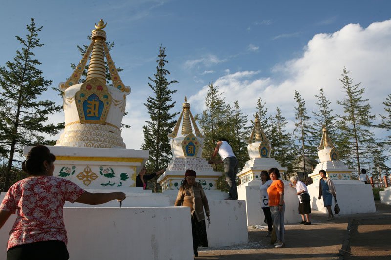 1000 человек вошли в мандалу Ямантаки, в мандалу своего Учителя; он принял всех и даровал каждому Путь к Освобождению. Эта мандала нерушима, как и все происходящее здесь в эти дни. Около недели Ело Ринпоче будет давать комментарий на тантру Гухьясамаджи ― едва ли не самую главную тантру всего тибетского буддизма. В тибетских текстах есть древнее предсказание: до тех пор пока сохраняется тантра Гухьясамаджи, будет существовать и само Учение Будды. Получить передачу и послушать объяснения на садхану этого идама приехали буддисты из многих городов России: Омск, Саратов, Москва, Питер, Чита, Екатеринбург, Иркутск. На учениях все внимательно сосредоточены, тусовка и пустая болтовня здесь не приветствуются. А вечером после учения расходятся все не сразу: кто-то продолжает обсуждения и размышления об услышанном, кто-то идет на километровую кору долгой жизни, а кто-то активно включается в жизнь монастыря и помогает убирать и белить ступы, как это сделала агинская сангха, например, но главное ― все излучают неизменную радость. Это необычная радость, она очень тихая и светлая, это радость пребывания в нерушимой мандале Ело Ринпоче.
