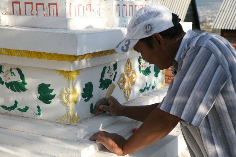За всем этим строительным хозяйством неустанно приглядывает и контролирует все процессы правая рука Ело Ринпоче, его бессменный помощник и ученик геше-лхарамба Тензин-лама. За долгие годы жизни в Улан-Удэ он прекрасно освоил бурятский и русский языки, а также все хитросплетения менталитета обеих народностей. Поэтому, даже встречаясь с непреодолимыми трудностями, он умудряется их преодолевать. Что восхищает больше всего, так это основательность в постройках и планировке ― все тщательно продуманно и качественно выполнено. Именно ― на века! Когда наблюдаешь за стремительным проявлением мандалы буддийского храма на таинственной Лысой горе, не вызывает ни малейшего сомнения тот факт, что и столетия спустя здесь будет биться сердце Дхармы.