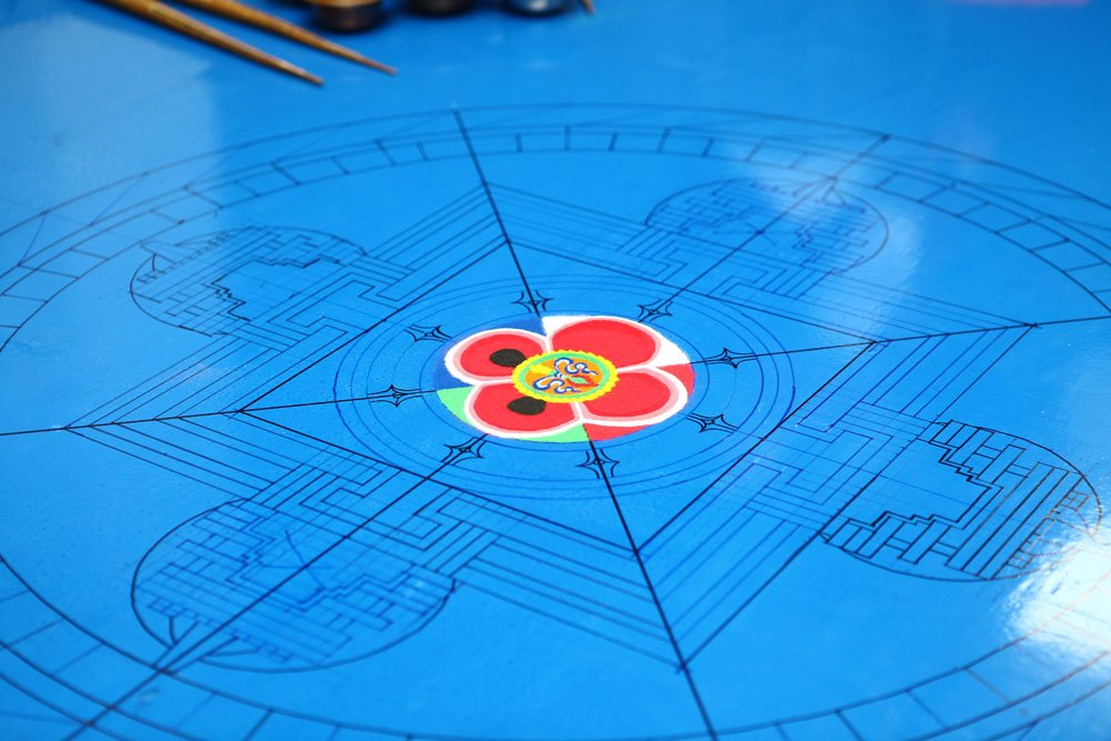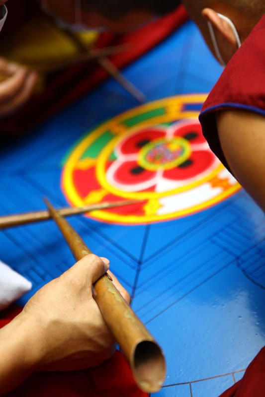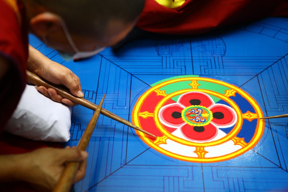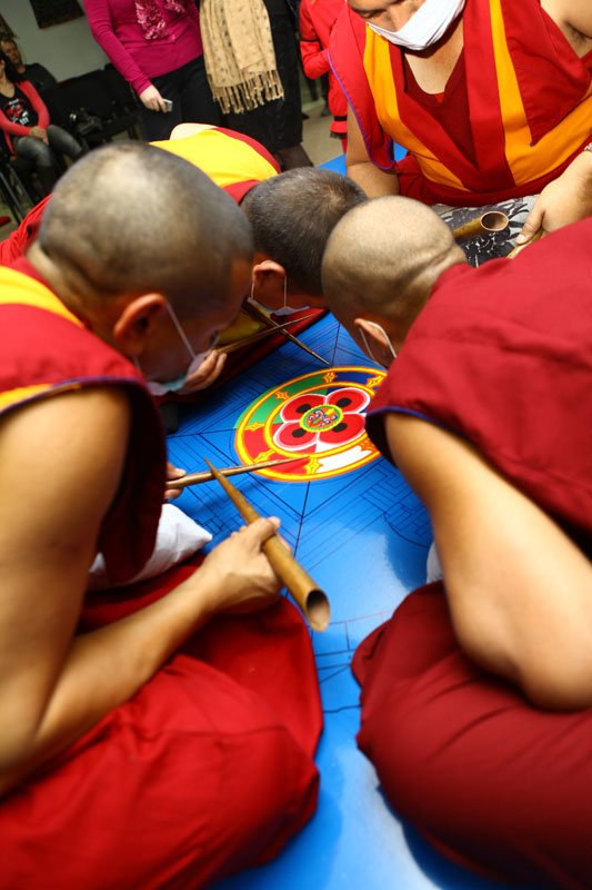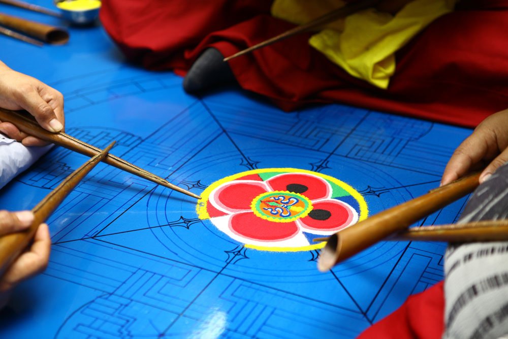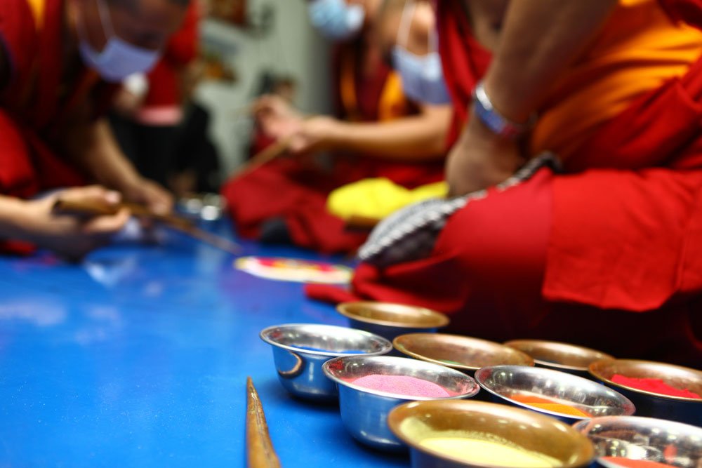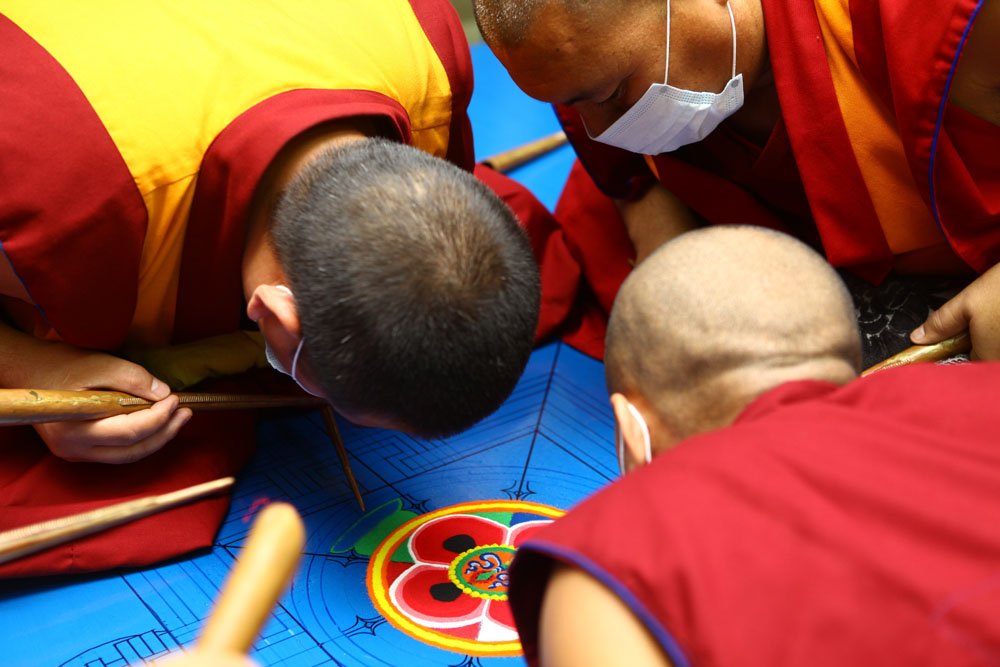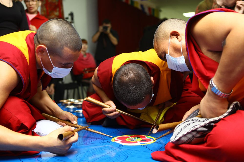 В Краснодаре продолжается строительство песочной мандалы Манджушри