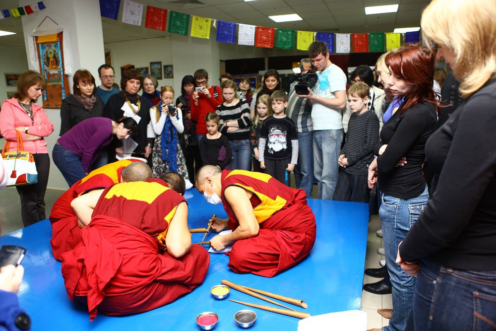 Монахи тибетского монастыря-университета Дрепунг Гоманг 31 марта продолжили работу над созданием песочной мандалы Манджушри в Краснодарском историко-археологическом музее заповеднике Е.Ф. Фелицина и провели ритуалы призывания Зеленой Тары и устранения препятствий.
