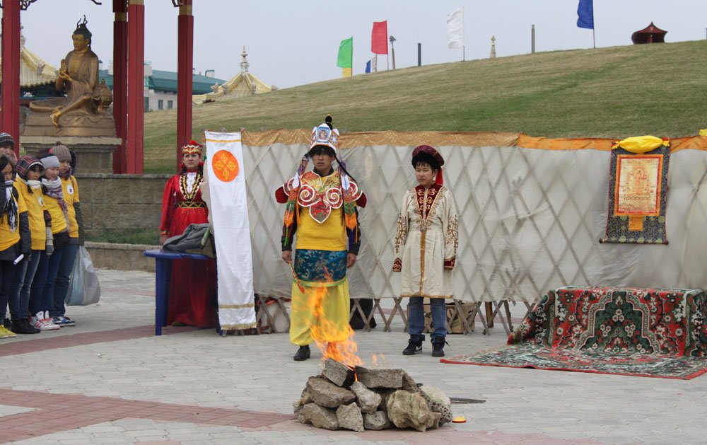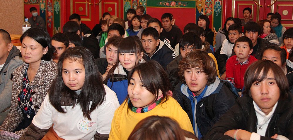 3 ноября в главвном храме (хуруле) «Золотая обитель Будды Шакьямуни» состоялась молодежная игра «Путь к познанию», в ходе которой ребята возвели символическую мандалу, а в молельном зале состоялась общая медитация о любови и сострадании ко всем живым существам. Медитация прошла под руководством Тэло Тулку Ринпоче.