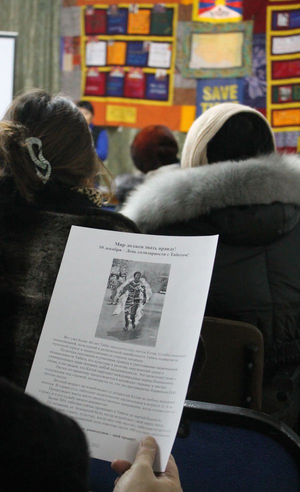 10 декабря республиканским обществом «Друзья Тибета» была проведена встреча с буддистами, посвященная Международному дню солидарности с Тибетом. Председатель общества Балган А.А. рассказала о 2-й специальной Международной встрече групп поддержки Тибета, которая прошла в Дхарамсале в ноябре этого года. Озвучены основные тезисы выступления Его Святейшества Далай ламы на встрече, в которой Его Святейшество выделил три основных аспекта в тибетском вопросе: состояние окружающей среды, тибетская культура и тибетский буддизм. Участники встречи выразили сострадание жертвам насилия в Тибете и прочитали молитву «Слова истины», составленную Далай-ламой в 1960 году.