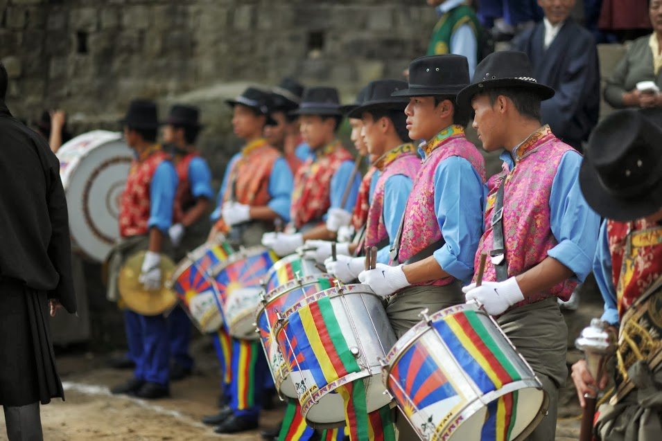 После нескольких речей школьный оркестр ознаменовал начало выступления учеников энергичным боем барабанов. Затем последовала трогательная песня в исполнении младших учеников о том, как они скучают по своим родителям в Тибете и помнят их великую доброту. После этого ученики представили яркий костюмированный танец в традиции юго-восточного Тибета.