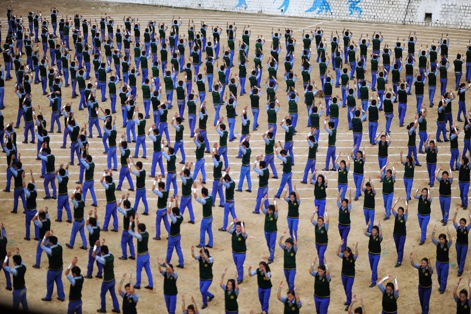 Кульминацией утренней программы стало гимнастическое представление в исполнении 900 учеников среднего и старшего возраста. Их синхронные движения произвели ошеломляющий эффект, особенно когда они разместились в определенном порядке, составив слова и символы: «Распространяйте любовь и сострадание», «Воздаем почести нашим героям-мученикам» и символ «Ступеней этики».