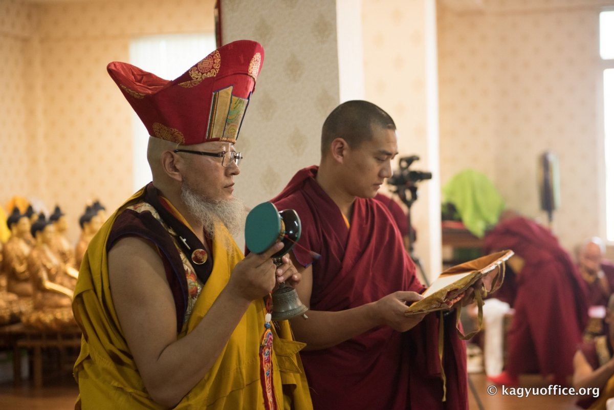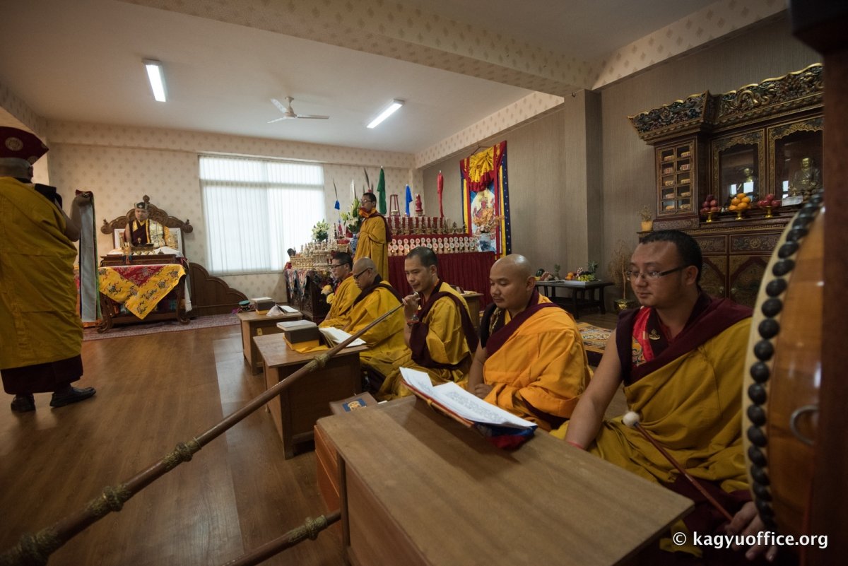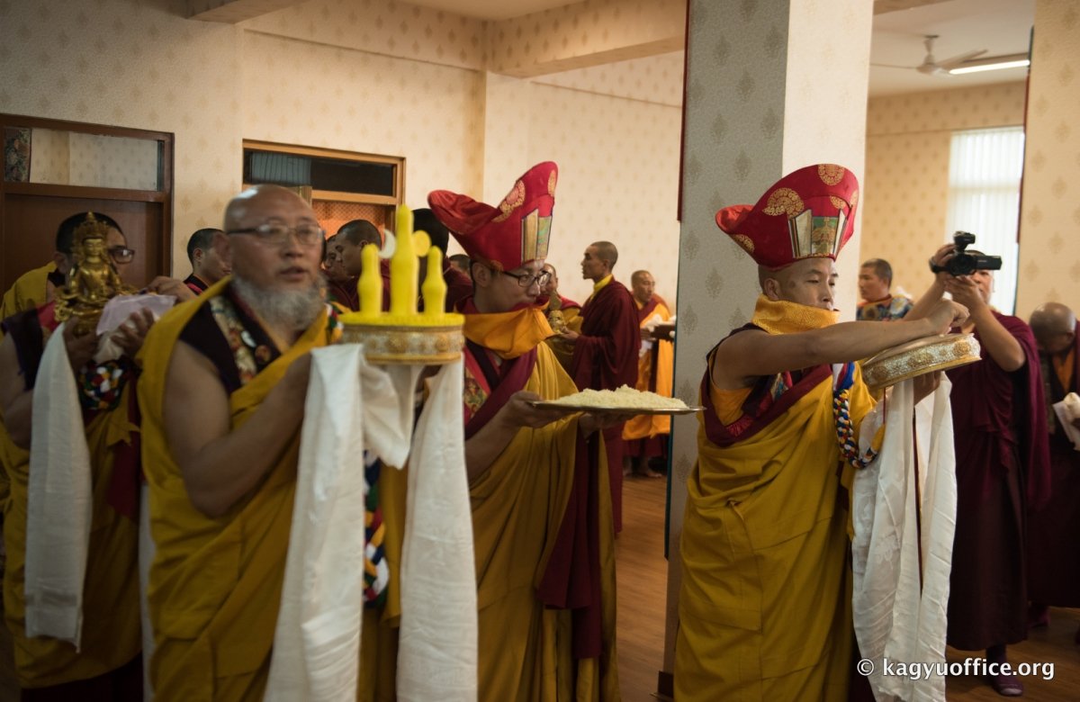 В заключительный день, 29 января, Кармапу пригласили принять участие в практике, проходившей в частном храме при павильоне «Кагью Монлам Ченмо». Заняв место на троне, облачившись в шапку деяний, Кармапа принял участие в практике вместе с шестнадцатью монахами. В конце церемонии затворники впервые поднесли Кармапе символы тела, речи, ума, качеств и деяний Будды. Они также выразили горячее желание, чтобы он как можно скорее вернулся в Сикким.