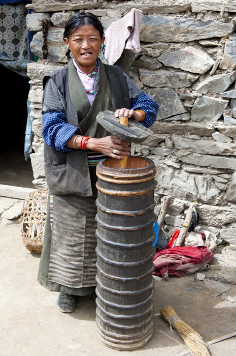 В названиях следующих двух компонентов новогоднего алтаря ло-пю (тиб. lo phud) и чанг-пю (тиб. chang phud), «первого урожая» и «первого чанга», присутствует общий слог «пю», «первый», и его мы еще не один раз встретим в новогодних ритуалах. Чтобы вызвать благосклонность и благословение божеств нужно проявить к ним подлинное уважение, поэтому в качестве подношения им всегда предназначалась первая часть добычи, урожая, дохода и т.д. Ло-пю представляет собой горшочек с молодыми побегами пшеницы, которые необходимо прорастить до наступления нового года. Они, как не трудно догадаться, символизируют первый урожай. Чанг-пю – это первая порция приготовленного к новогоднему столу чанга, традиционного тибетского слабоалкогольного напитка, который в англоязычных источниках принято называть тибетским ячменным пивом. Однако изучив метод его приготовления, можно с уверенностью сказать, что это ячменная брага.