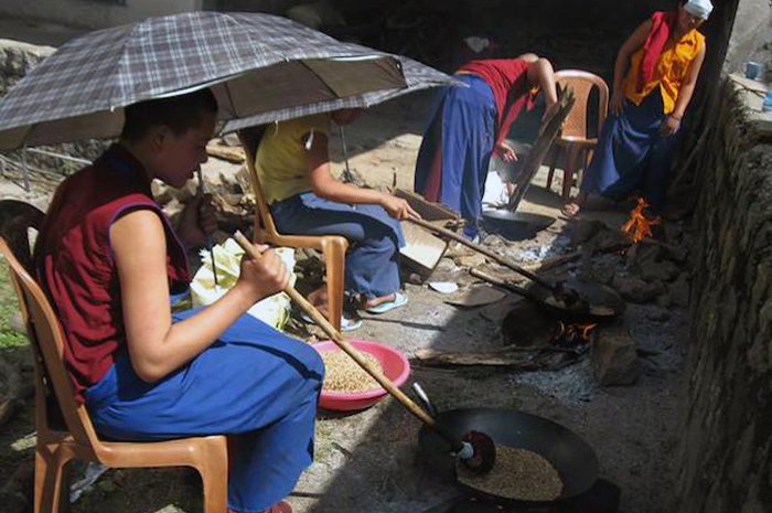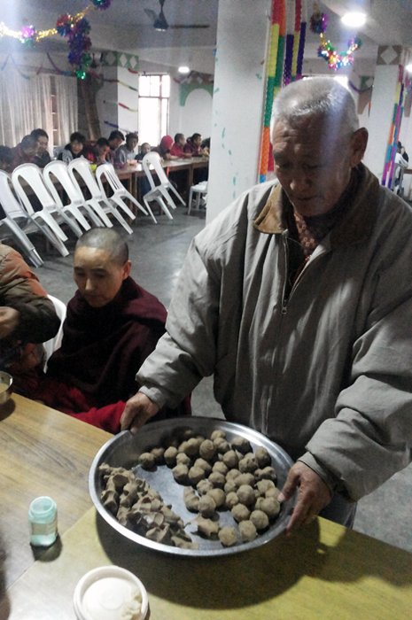 Однако сам гутук – это мероприятие в большей степени семейное, нежели официальное, за редким исключением, гостей, кроме родственников, на него не приглашают. В связи с чем сразу вспоминается распространенное в нашей стране убеждение, что Новый год – это семейный праздник. Несмотря на то, что тибетцы часто употребляют фразу «новогодний гутук», следует уточнить, что она не совсем корректна. Традиционное празднование Лосара имеет два взаимосвязанных, но отличных друг от друга компонента – проводы уходящего года и встреча наступающего. Сначала тибетцы провожают старый год, чтобы попрощавшись с ним избавиться от всех его негативных составляющих, и только затем они уже очищенными вступают в новый год, который, как они надеются, благодаря богатому новогоднему алтарю и серьезной подготовке, будет успешным и обильным. Поэтому день Нищу-гу (Гутук) можно без колебаний назвать днем проводов уходящего года. Все, чем тибетцы занимаются в этот день, можно охарактеризовать термином «генеральная уборка» – внешняя обитель очищается от скопившейся грязи, пыли и других нечистот, а внутренняя – от негативных помыслов, препятствий и болезней.