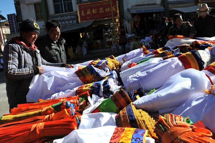 После того, как все новогодние блюда приготовлены, а новогодний алтарь сооружен, вечером последнего дня уходящего года тибетцы готовят праздничную одежду, в которую каждый член семьи облачится в первый день нового года, после чего все отправляются спать. Как вы уже догадались, тибетцы не встречают Новый год в полночь, как это принято на Западе, они делают это ранним утром первого числа. Однако это уже тема следующего раздела.