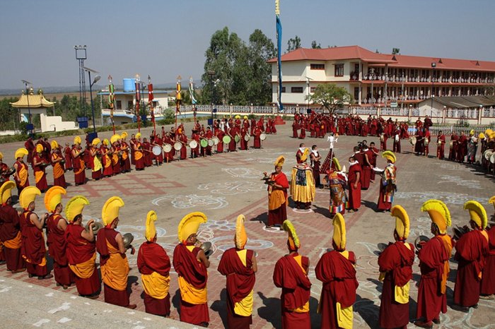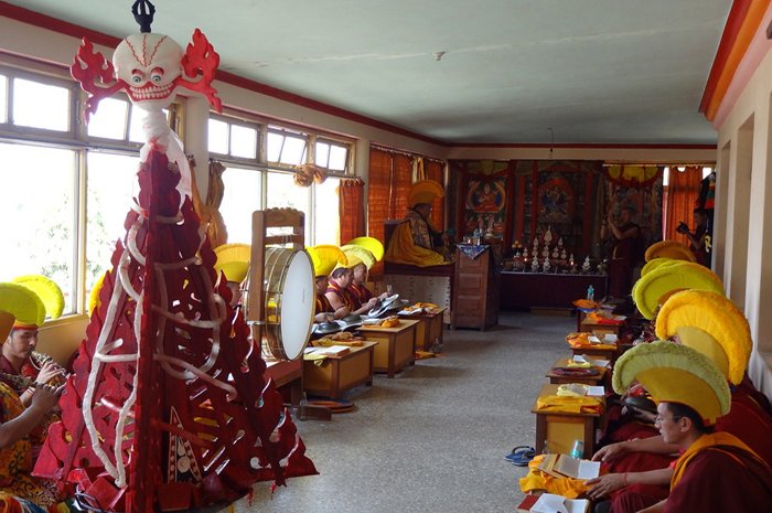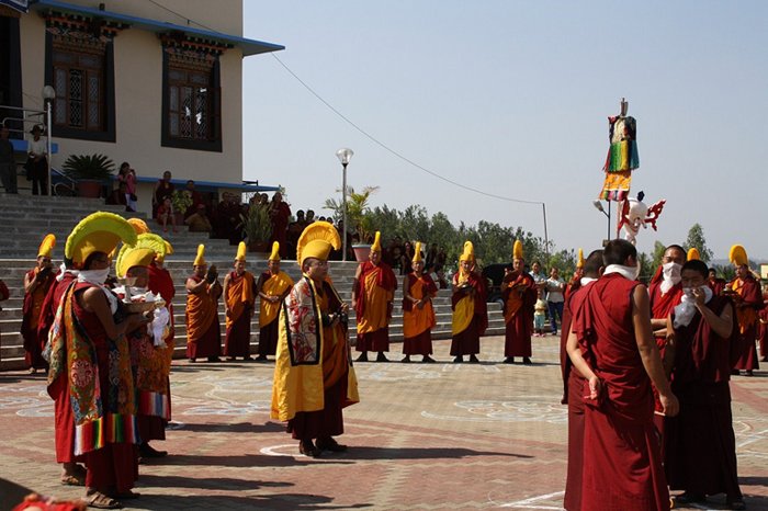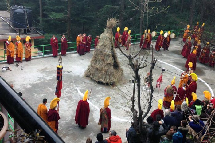В этот день члены тибетского совета министров (кашага), чиновники различных рангов и государственные служащие собирались во дворце Потала. После приветствия и поздравления Далай-ламы казначеи и высший генералитет подносили ему ритуальные шарфы (хатаги). По завершении собрания проводилась пышная церемония искупительного подношения. Далай-лама выходил на балкон и занимал место под специально натянутым тентом, за его спиной рассаживались министры, остальные члены правительства и служащие. Монахи монастыря Намгьял в восточном дворе Дэянг (тиб. bde yangs shar) выполняли подношение торма (тиб. gtor sgrub), испоняли танцы гарчам (тиб. gar ‘chams) и сжигали в заранее построенном соломенном шалаше лингам (тиб. ling ga), пирамидальную фигуру, символизирующую все темные и враждебно настроенные силы, вершина которой украшена «смеющимся черепом», напоминающим пиратского Веселого Роджера.