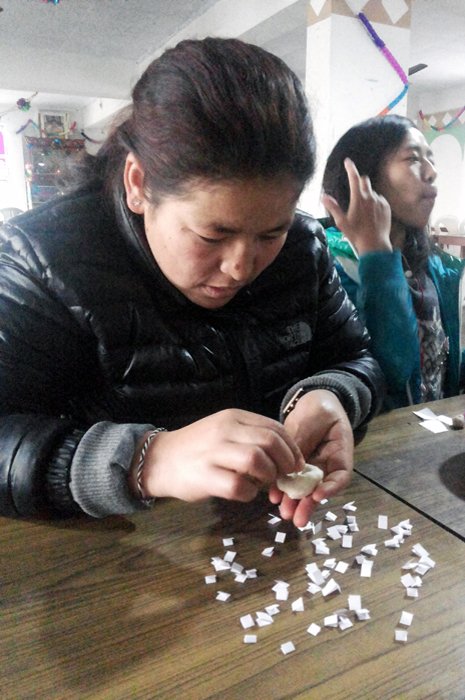 В любом случае, после завершения банных мероприятий 29-го числа следуют совместные приготовление и трапеза гутука, который тибетцы считают частью обряда изгнания из дома демонов, злых духов и болезней. Поскольку более подробно сам суп гутук и его приготовление описаны в статье, посвященной новогодним атрибутам, здесь мы ограничимся лишь кратким обзором. Итак, гутук – это новогодняя разновидность супа бактук, тукпы с клецками, отличительной чертой которого является наличие девяти специальных ингредиентов, а также особых клецек несколько большего размера, в часть из которых заложены различные несъедобные предметы, а другая часть выполнена в виде фигурок особых форм. И те и другие символизируют положительные и отрицательные черты характера или поведения людей, их значение приведено в вышеупомянутой статье в таблицах. Основная же часть клецек, идущих в пищу, имеют форму небольших шариков или ракушек, и напоминают собой итальянские ньокки (итал. gnocchi), клецки овальной формы.