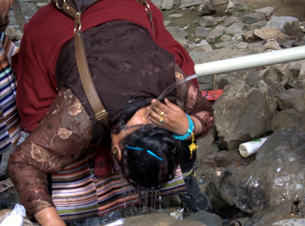 Проживающие в сельской местности тибетцы после тщательной уборки домов и территории разводят во дворе большой костер, чтобы согреть на нем воду для помывки всех желающих членов семьи. Суровый климат и аскетические условия жизни большинства тибетцев не позволяют им мыться часто, однако в новый год все хотят войти чистыми. Следует отметить, что в не столь отдаленной исторической перспективе для многих тибетцев Лосар был чуть ли не единственным поводом для помывки, а иногда и смены одежды. Во многих семьях, особенно среди кочевников, грязную одежду никогда не стирали – на Новый год ее меняли и просто сжигали.