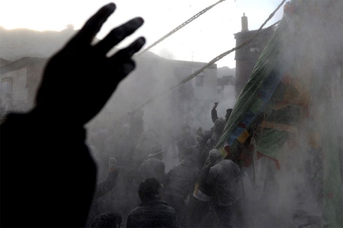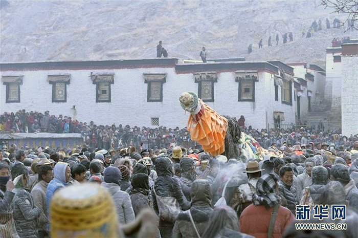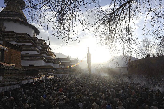 В целом, церемония разбора новогоднего алтаря – процедура необходимая, но не очень веселая, как вынос засохшей и осыпающейся новогодней елки. Впрочем, в отдельных районах существуют местные традиции, позволяющие поставить яркую, красочную и запоминающуюся точку в новогодних празднованиях. Например, возведение флага дарчен в Шигацзе (тиб. gzhis ka rtse) на площади перед монастырем Гьялце-пэлкор-чодэ (тиб. rgyal rtse dpal ‘khor chos sde dgon pa).