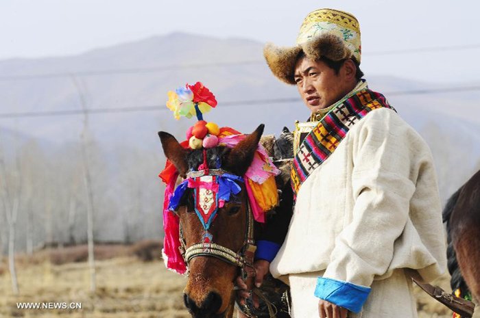Лошадей, мулов и ослов, достигших трехлетнего возраста тибетцы называют «седловыми» (тиб. sga rgyag pa), поскольку именно в этом возрасте их объезжают и ставят под седло. Четвертый день Нового года считается наиболее благоприятной с астрологической точки зрения датой начала объездки этих животных. Условия и время появления этого обычая проследить невозможно, поскольку он не описан в письменных источниках. Конечно же, животных объезжают и в другое благоприятное для этого время, и технически эти мероприятия ничем не отличаются. Однако новогодняя объездка знаменательна тем, что животных, перед тем как их впервые оседлать, кормят новогодним чемаром, что, по мнению тибетцев, благословляет их и укрепляет здоровье, предотвращая несчастные случаи и повышая сопротивляемость к заболеваниям.