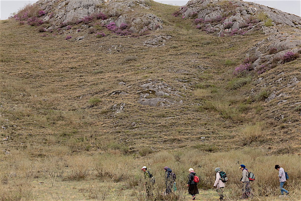 Первый привал при обходе Хайыракана называется «Аржаа» и происходит через полтора часа ходьбы. Минеральный источник в отверстии большого известняка бьет чистейшей, целебной водой. Далее встречается «Дерево, удлиняющее жизнь», затем паломников ждет «Уттуг Хая» – дырявая скала со сквозной пещерой, в которой можно медитировать. На половине пути неожиданно вырастают песчаные барханы. На песчаном гребне буддисты из паломнической группы провели рецитацию, массовое чтение главных мантр.