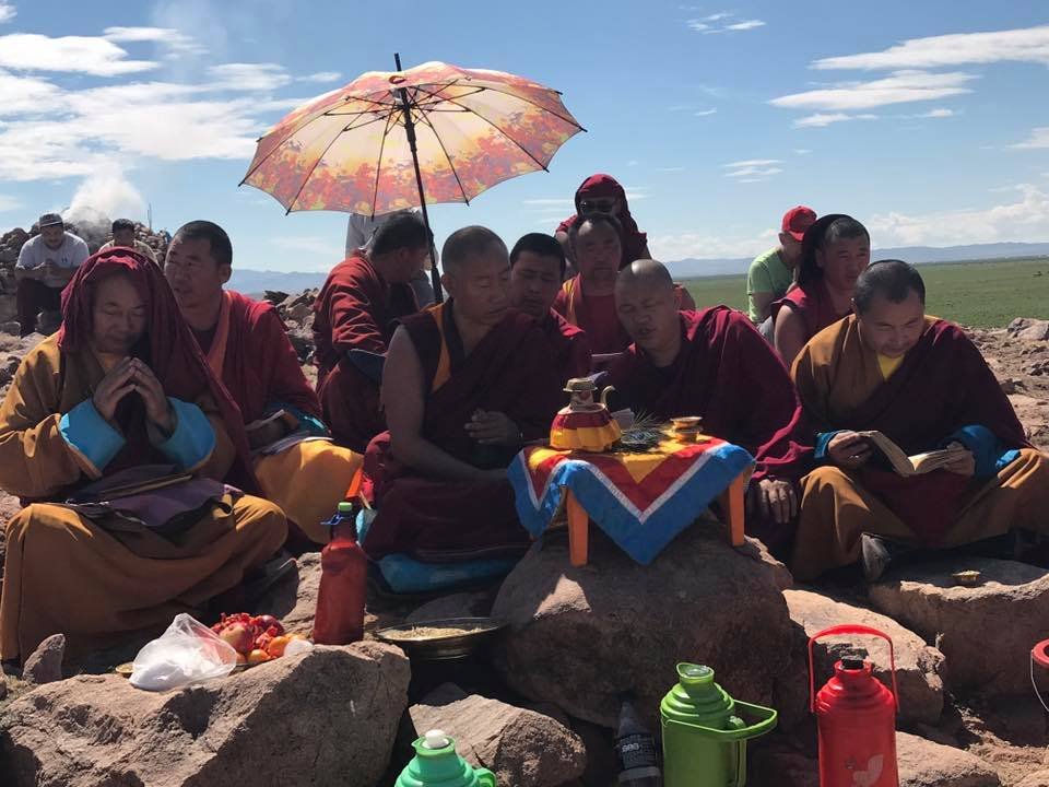 Затем 2 июля по просьбе монгольских лам на одном из близлежащих обоо был проведен ритуал Сан – подношение божествам и духам местности.