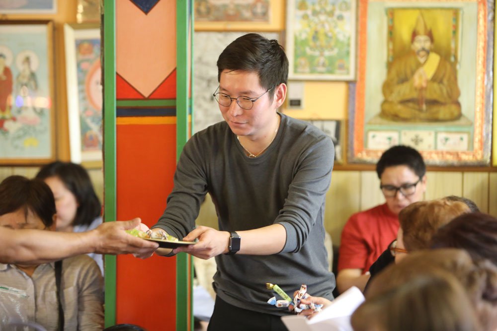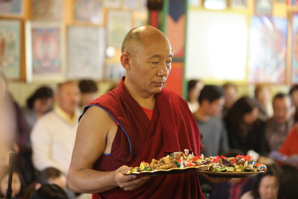 После полуторачасовой лекции и принятия прибежища собравшиеся прервались на обед. Блюда традиционной калмыцкой кухни были предложены всем гостям в уютной столовой хурула. Завершилась встреча ритуалом цог с участием монахов хурула. Впервые цог читали миряне. После этого Тэло Тулку Ринпоче поблагодарил всех, кто принимал участие в организации этого мероприятия и благословил каждого присутствующего.